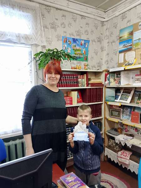 В завершение мероприятия Богдан Добродей подарил библиотеке аппликацию, выполненную своими руками.