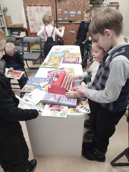 Библиотекарь Отвиновская Е. Т. познакомила наших юных друзей с правилами библиотеки, рассказала, что нужно сделать, чтобы стать читателем, а также показала интересные и необычные книжки. И, конечно, мальчишки и девчонки с удовольствием поиграли в интерактивной песочнице, в аэрохоккей, посидели на мягких пуфиках, пообнимались с библиотечным котом и полистали красочные, яркие и такие занимательные книжки.