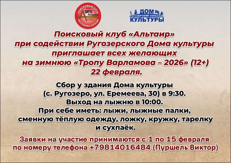 Приглашаем всех желающих на зимнюю «Тропу Варламова 2026»