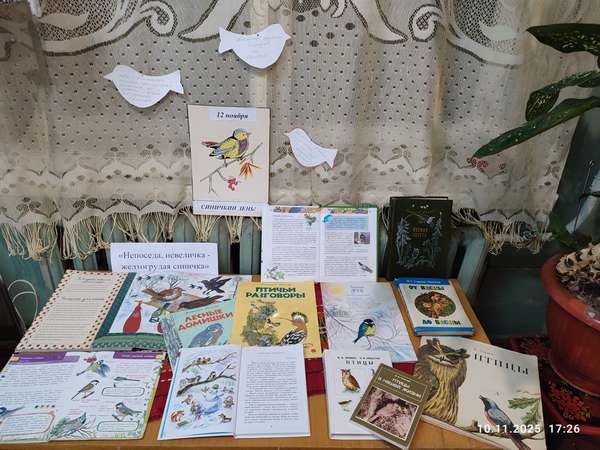 В Ребольской сельской библиотеке оформлена выставка под названием «Непоседа, невеличка - желтогрудая синичка». Читатели библиотеки через книги познакомятся с удивительным миром перелетных птиц, их образом жизни, повадками и особенностями.