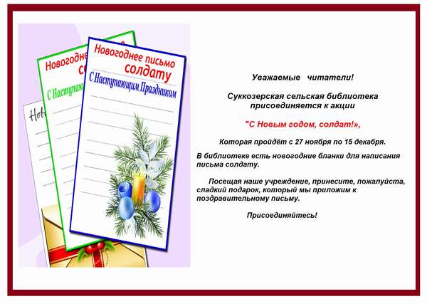 В библиотеке есть новогодние бланки для написания письма солдату.