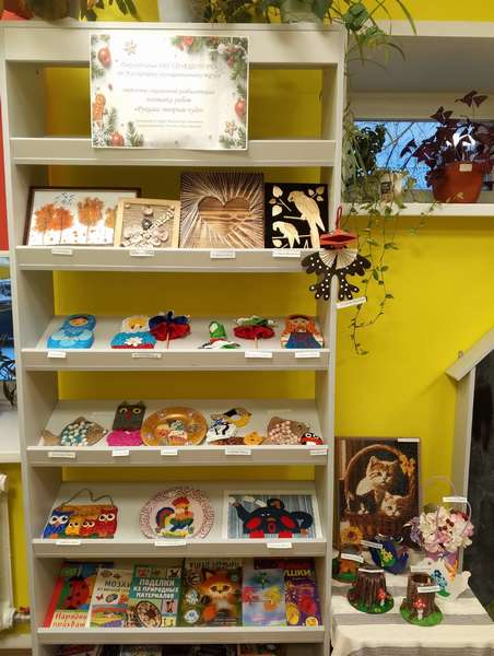 В детском отделе Муезерской модельной библиотеки представлена выставка творческих работ получателей услуг подразделения ГБУ СО «КЦСОН РК» по Муезерскому муниципальному округу «Руками творим чудо».