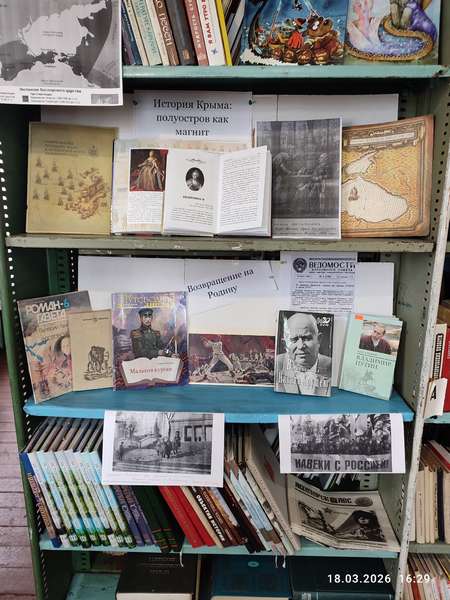 В Суккозерской сельской библиотеке прошел час патриотизма «Крым и Россия вместе навсегда», посвященный этому знаменательному событию. Юные читатели отправились в увлекательное путешествие по полуострову, исследуя его удивительную природу, знаменитые достопримечательности и символы. Библиотекарь рассказала об истории "Крымской весны", подчеркнув неразрывную связь Крыма с Россией.