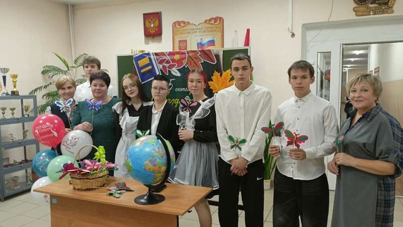 - в пятницу с самого утра в Ругозерской школе звучали песни и на входе любимых педагогов встречали ребята 10-11 класса с открытками и поздравлениями.