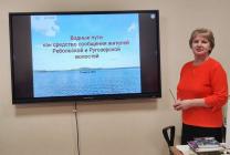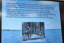 Во время рассказа – презентации мы словно окунулись в прошлое территории нынешнего района – его водных систем и населённых пунктов, узнали, что на площади района (полностью или частично) находятся 493 озера и 202 реки, на подробных картах местности будто наяву увидели водные пути в прошлом и места проживания на их берегах, вспомнили и сами средства передвижения.