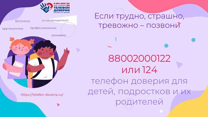 Подробнее об общероссийском детском телефоне доверия можно ознакомиться здесь: telefon-doveria.ru
