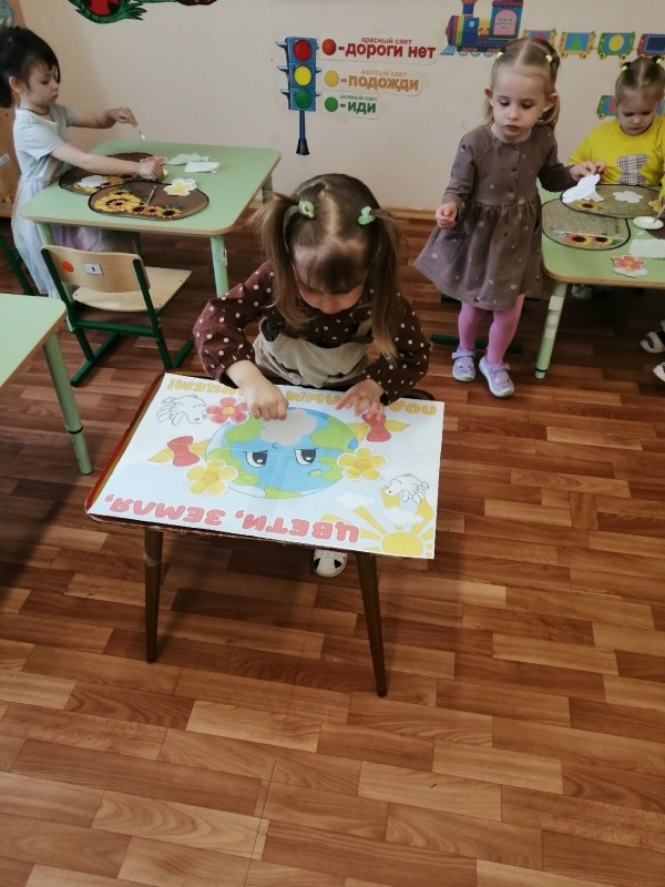 После бесед ребята с радостью погрузились в творчество, создавая своими руками аппликацию с красивым названием «зелёная планета».