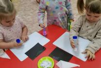 В группе раннего возраста детского сада №1 п. Муезерский была выполнена работа, в которой белый медвежонок увидел северное сияние.