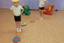 Колобок приготовил для зайца, волка, медведя и лисы спортивные задания, в которых они соревновались в прыжках, ловкости, смекалке и быстроте.