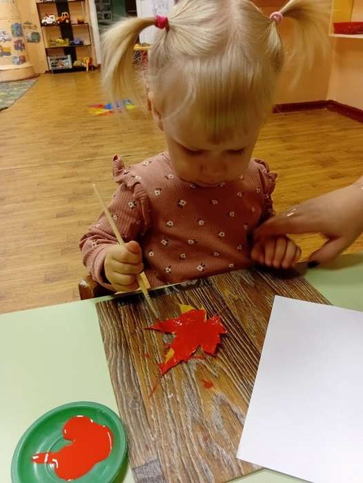 В разновозрастной группе «А» детского сада п. Лендеры проведено интересное занятие по рисованию - «Листопад» с использованием природного материала. Воспитанники рассматривали листья клена и березы, играли в подвижную игру «Листья и ветер», рисовали гуашью.