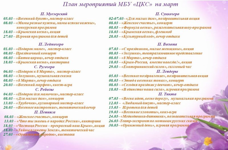 План работы культурно-досуговых учреждений