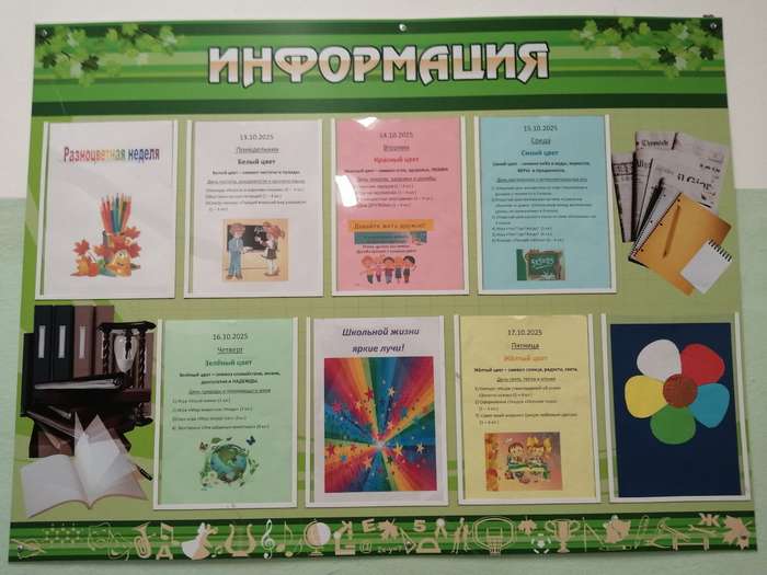 в начальной школе на минувшей неделе была проведена "Разноцветная предметная неделя". А это значит, что каждый день будет определенного цвета и определенного предмета.