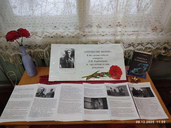 В Ребольской сельской библиотеке оформлена выставка, посвященная Дмитрию Михайловичу Карбышеву, легендарному советскому военному инженеру, генерал-лейтенанту инженерных войск, доктору военных наук. В этом году ему исполнилось 145 лет со дня рождения, и 80 лет со дня смерти.