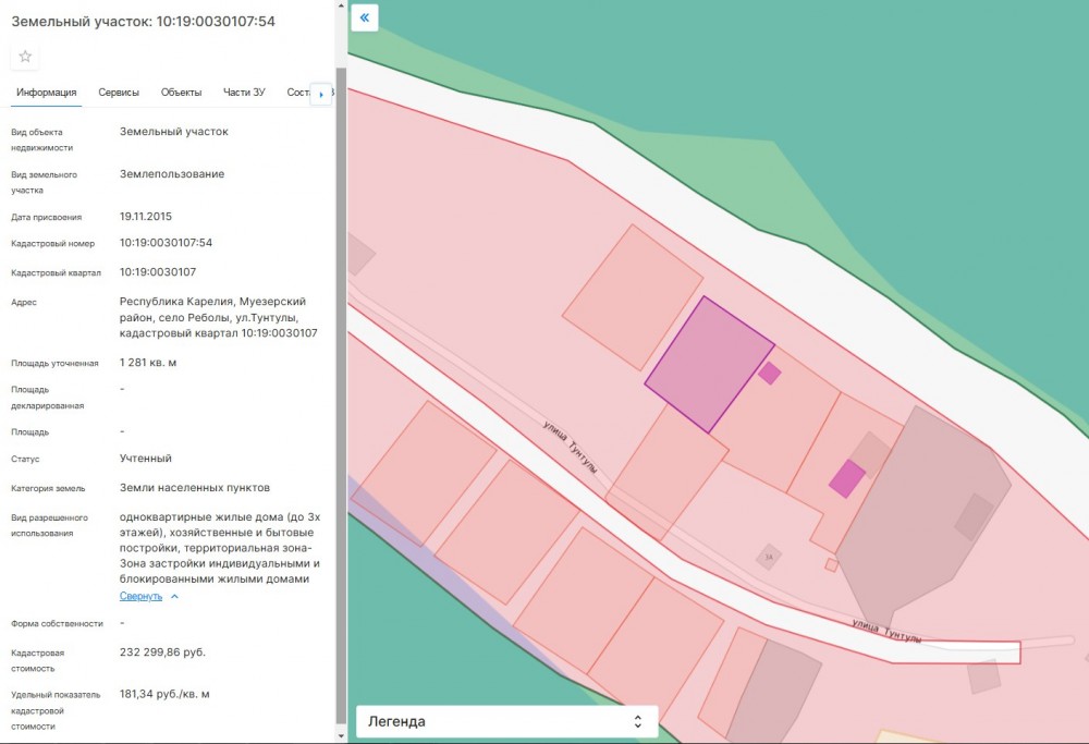 Лот 1. Земельный участок из земель населенных пунктов, имеющий кадастровый номер 10:19:0030107:54. Площадь 1281 кв. м. Цель использования: для индивидуального жилищного строительства. Местоположение: Республика Карелия, Муезерский район, Ребольское сельское поселение, с. Реболы.